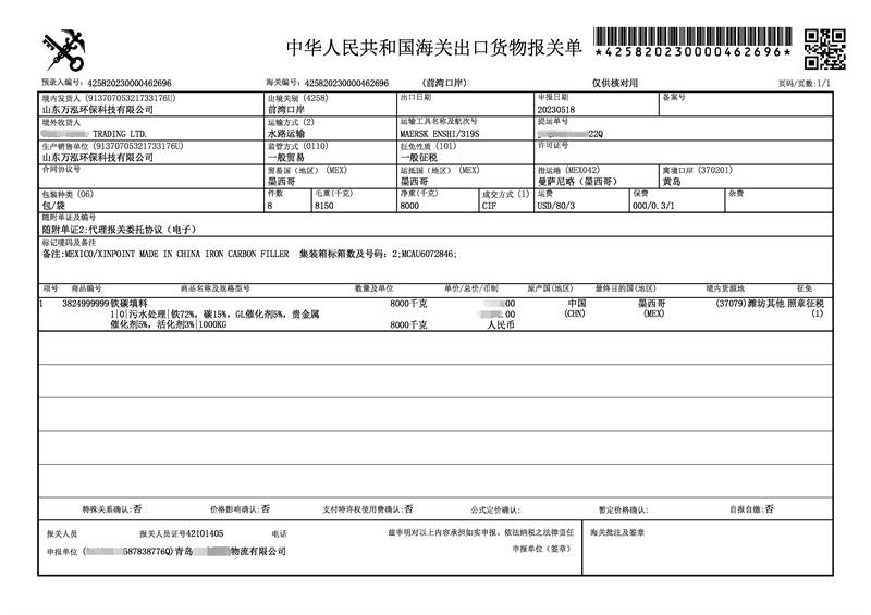 2019年,萬泓為墨西哥用戶提供第一批鐵碳填料,在鐵碳行業(yè)市場中,萬泓沒有辜負客戶期望,以處理效果好、長期運行穩(wěn)定、消耗量低、不板結等優(yōu)點,得到國外客戶的極大認可。時隔4年,2023年5月,墨西哥客戶再次回購萬泓GL鐵碳填料,感謝客戶信任,我們將會做得更好。