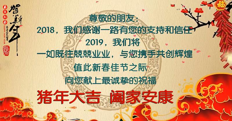 感謝一直以來(lái)對(duì)我公司的支持,為使廣大客戶朋友們做好節(jié)前安排,根據(jù)國(guó)家節(jié)假日安排的規(guī)定,結(jié)合公司的實(shí)際情況,現(xiàn)對(duì)2019年春節(jié)放假安排如下: