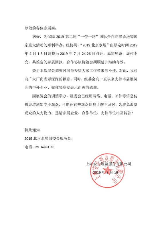 2019北京水展延遲開展最新通知